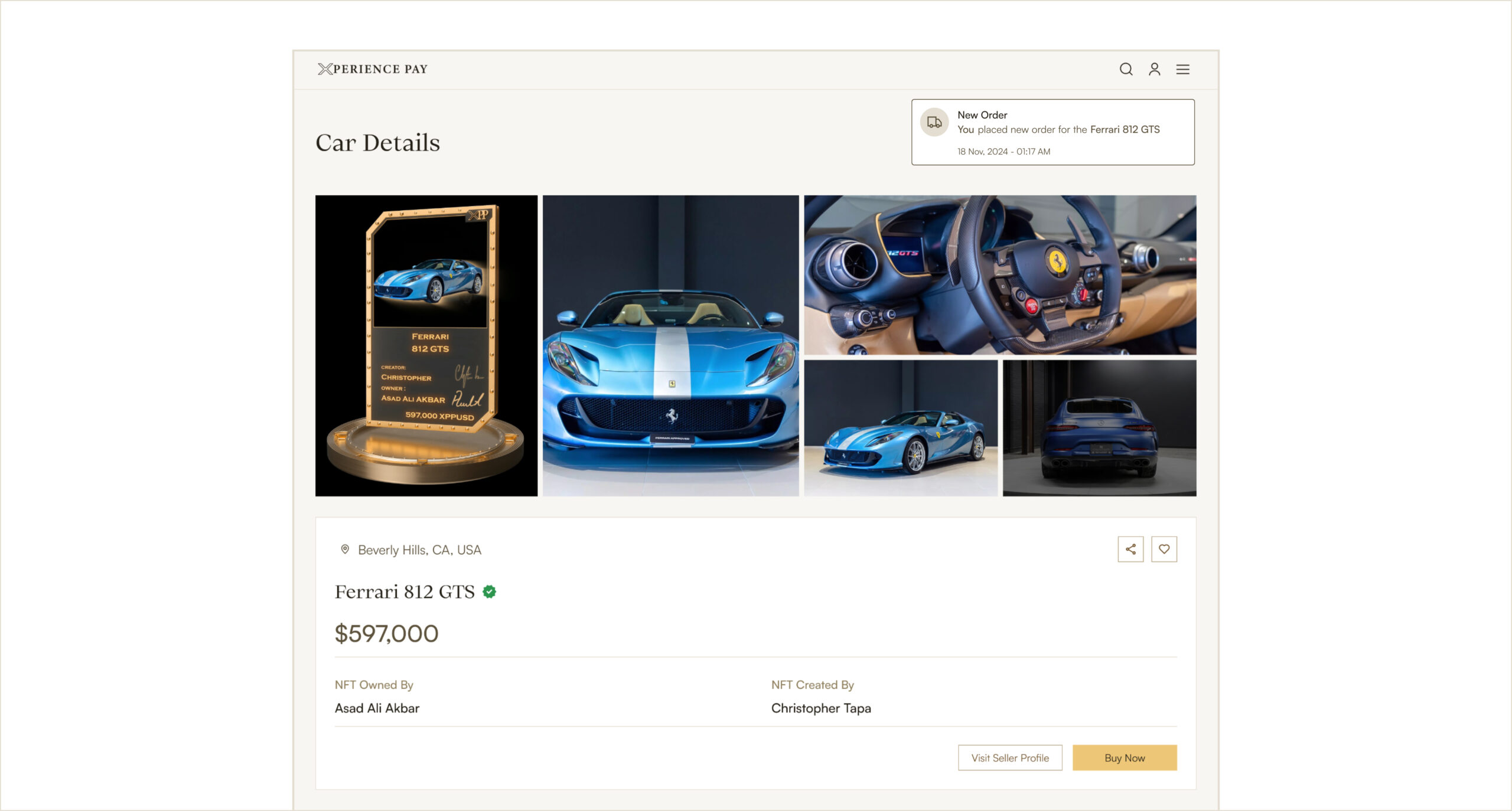 When a luxury product is sold on the XPP Marketplace, a unique NFT is minted for the item. This NFT contains key information such as product details, date of sale, and the identity of the original seller.